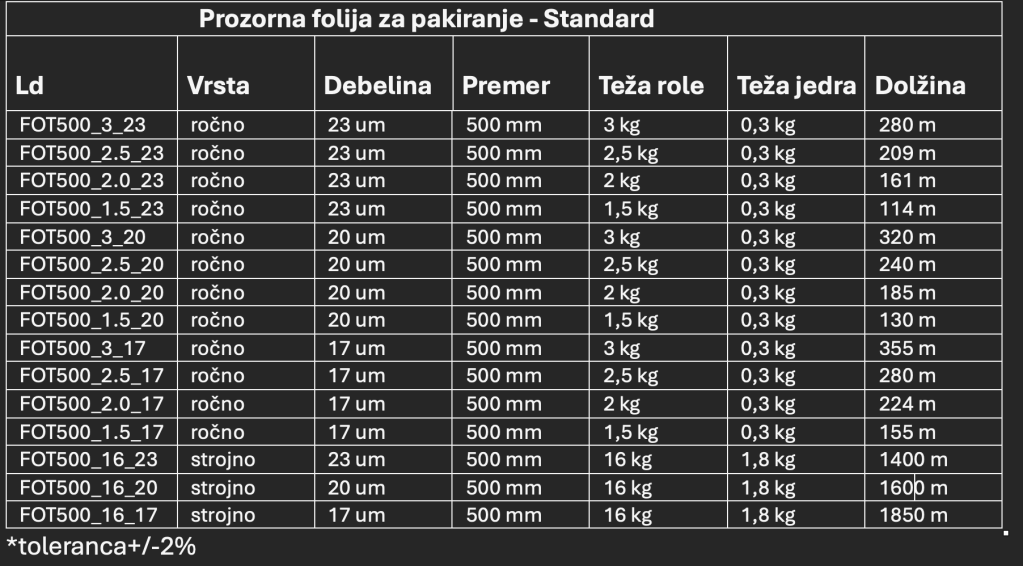 – namenjena za ročno in strojno ovijanje blaga in palet